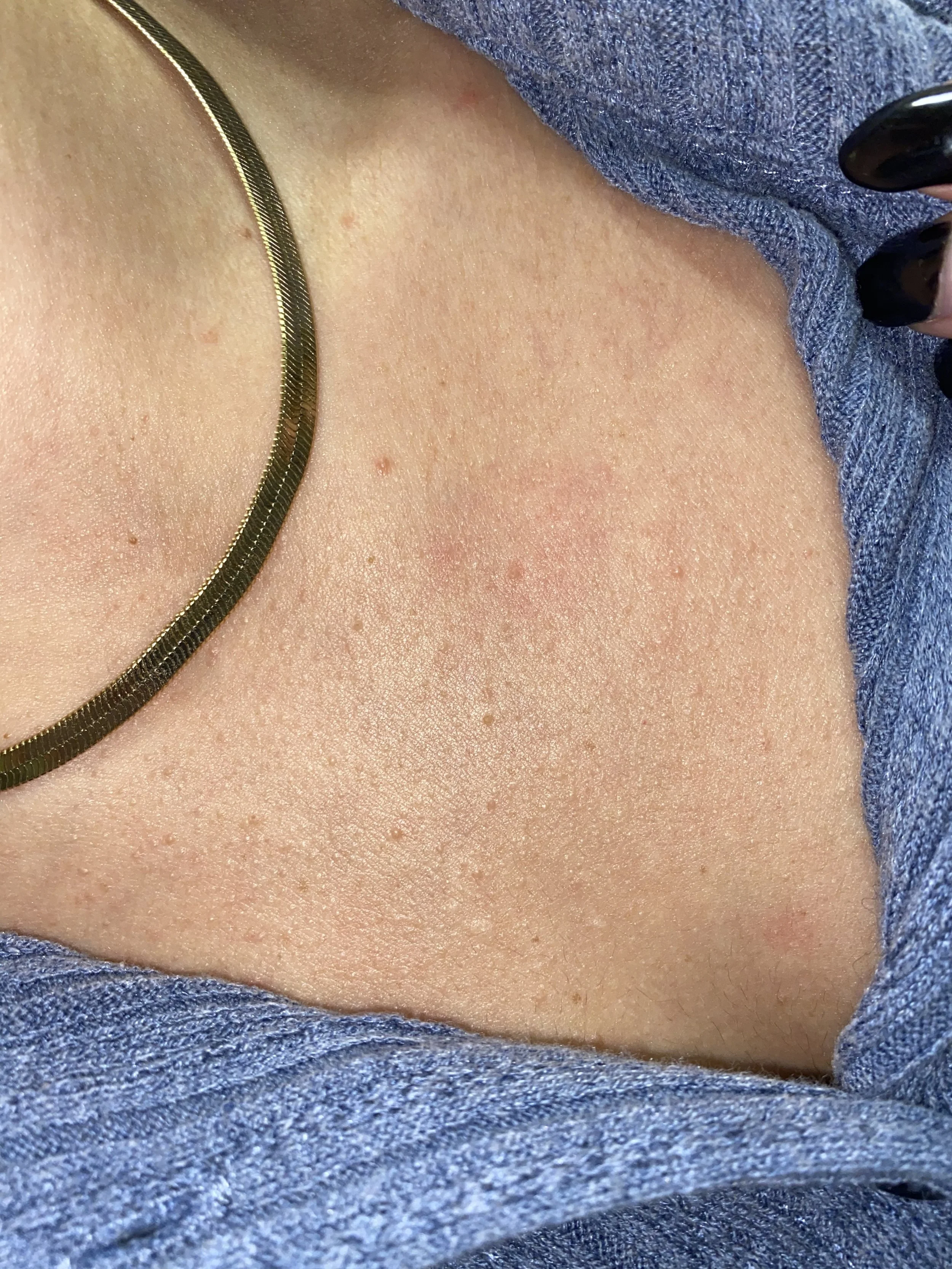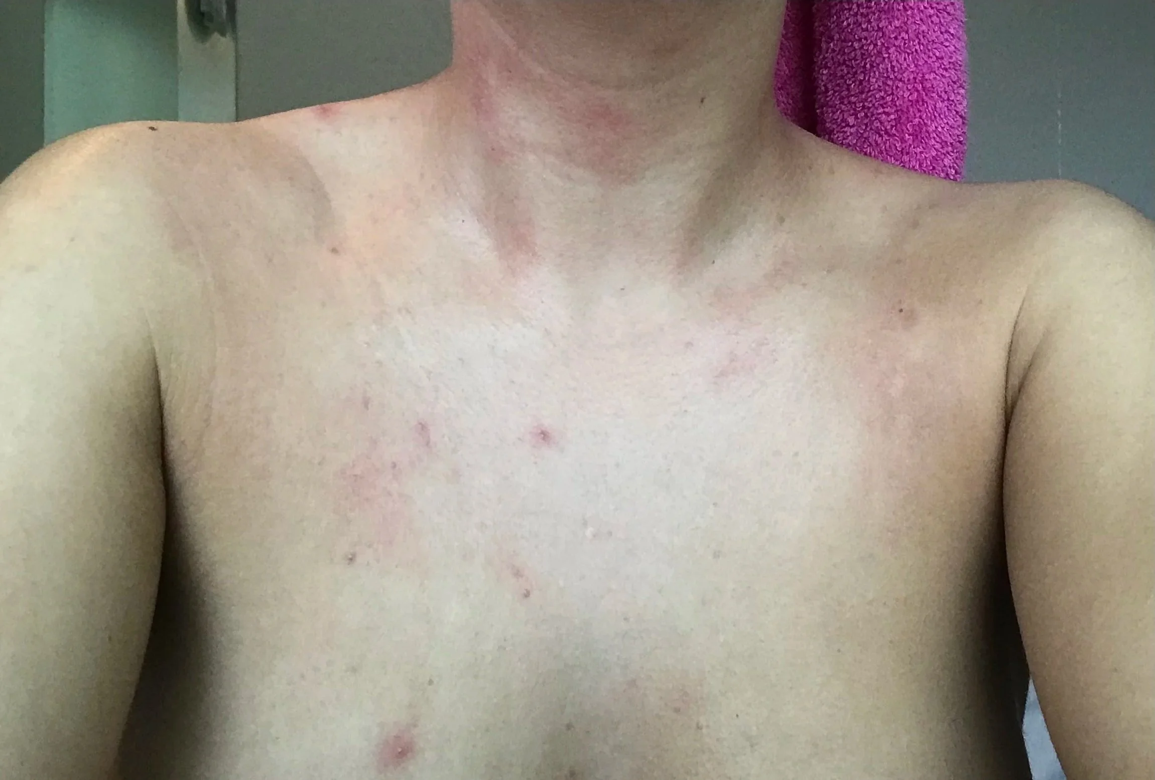 Everything escalated when I went off to college in 2017. My freshman year, clusters of itchy, pus-filled bumps started developing across my chest, back, neck, and forehead. After doing my own research, I was pretty positive that it was folliculitis. I went to see a dermatologist, and it was confirmed.